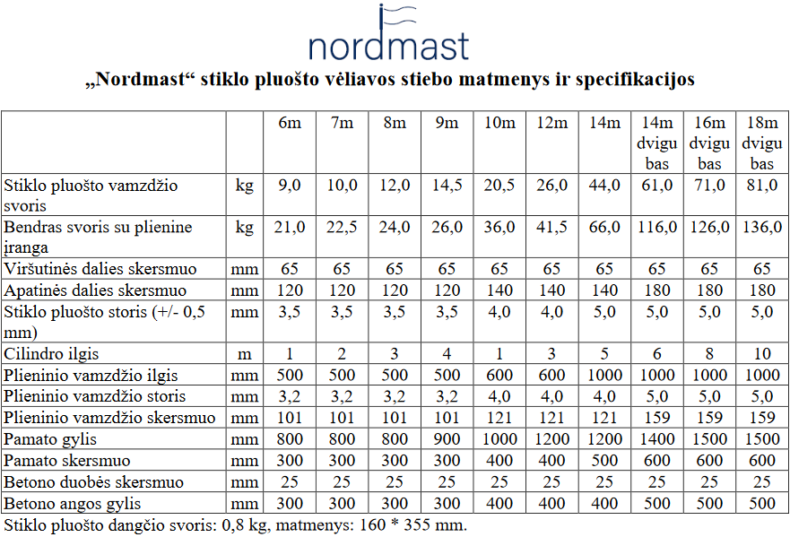 • Dėl kitokios, ar papildomos stiebų įrangos- tariamasi atskirai.