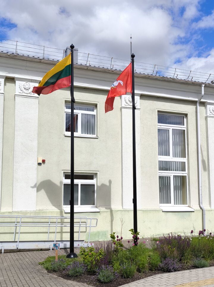 Vėliavos stiebas su išoriniu pakėlimu. Vėliava keliama ir nuleidžiama rankomis su išorėje esančia virve. Pakėlimo virvė yra stiebo išorėje.